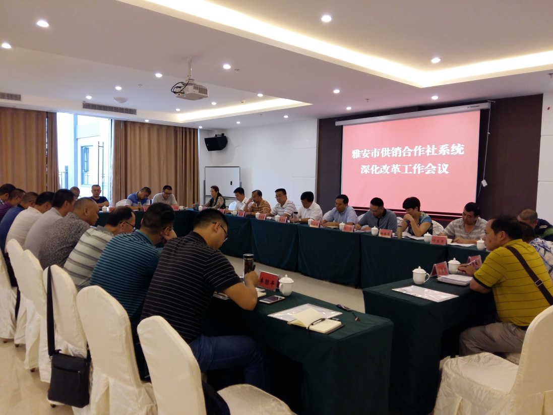 8月30日,雅安市供销社召开全市供销合作社系统深化综合改革工作会议。 会议总结 了 201 6 年 上半年 全 市 供销 系统 工作情况, 安排 部署下一步 综合 改革任务 。全市8个县(区)供销社主任、分管业务副主任,市供销社全体班子成员和科室负责人参加了会议,市委常委、市政府副市长葛书院同志和市委农工委主任李文峰同志全程参加会议并作了重要讲话。