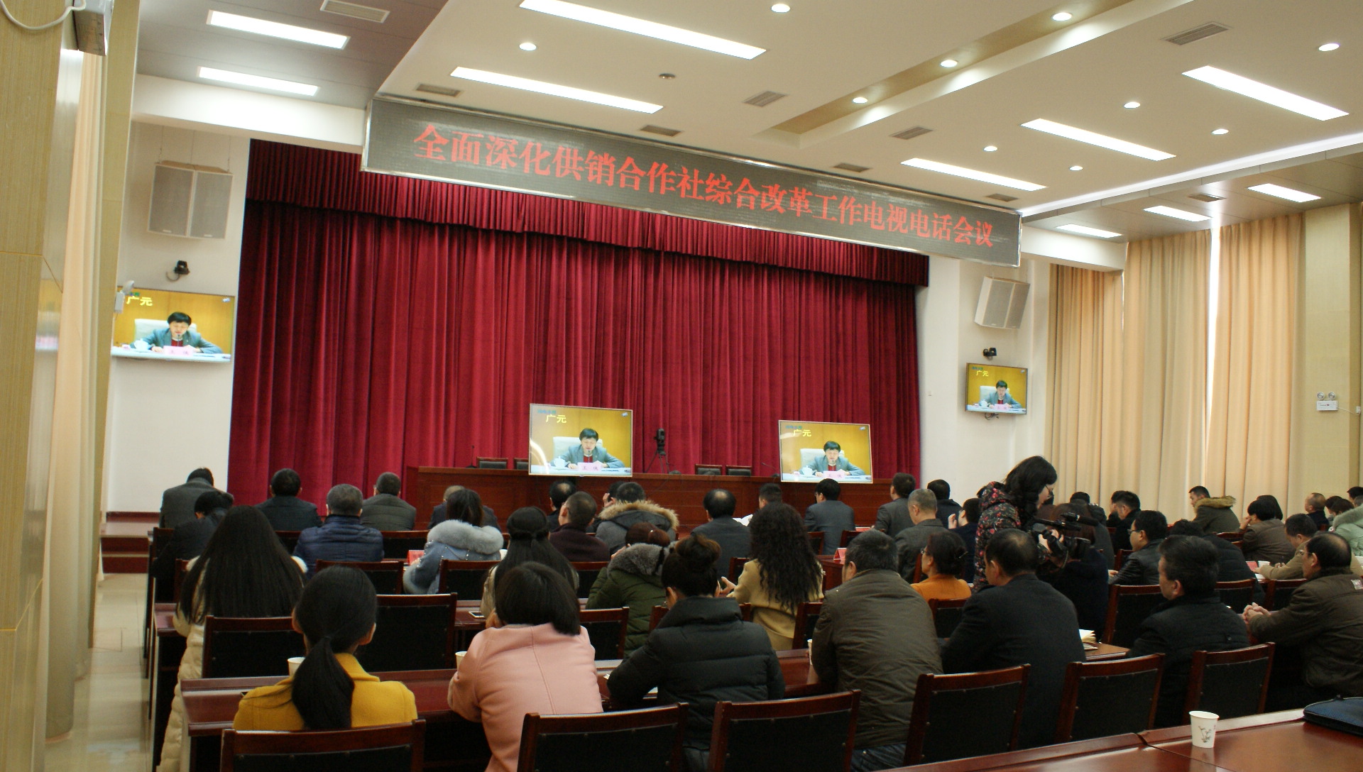 2 月 24 日,国务院召开 全面深化供销合作社综合改革工作 电视电话会议,中央政治局委员、国务院副总理汪洋、国家相关部委负责人、供销合作总社机关有关人员 在主会场 参加会议。会议由国务院副秘书长 江泽林同志主持。按照上级要求,广元市在市 政府会议厅设置分会场,市人民政府副市长杨浩 、市级有关部门负责人、市供销社领导班子和全体干部职工、市供销社 本级 社有企业 管理人员 等 100 余人参加会议。