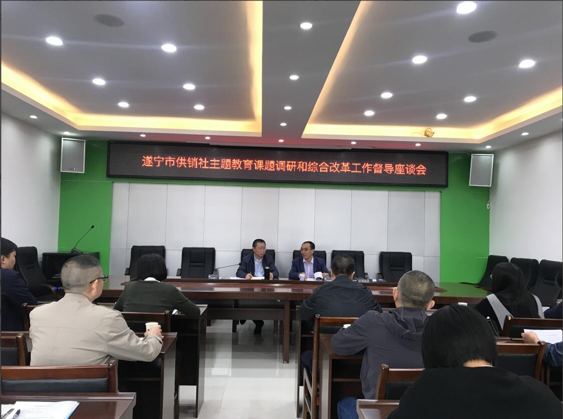 10月12日,遂宁市供销社副调研员钱志远等一行到射洪县调研供销社“不忘初心、牢记使命”主题教育开展情况及综合改革工作,县供销社党组书记、主任赵宇陪同。