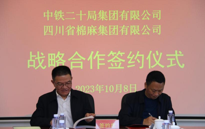 10月8日,四川省棉麻集团与中铁二十局集团有限公司成功达成战略合作。根据合作协议,双方将秉持优势互补、全面合作宗旨,围绕落实乡村振兴战略,以重大项目建设为支撑,在土地整理、高标准农田建设运营、农业社会化服务等项目组建利益联合体,开展深度合作,共绘发展蓝图,为助力新时代更高水平“天府粮仓”建设贡献力量。