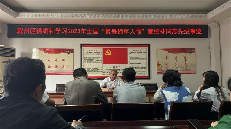 为宣传双拥先进典型,发挥先进典型示范带头作用,激发全社上下参军拥军积极性,10月30日,叙州区供销社召开2023年全国“最美拥军人物”董绍林同志先进事迹专题学习会。
