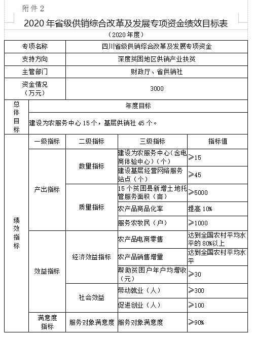 2.2020年省级供销综合改革及发展专项资金绩效目标表