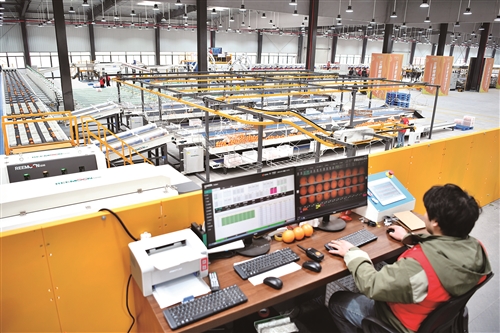 在三峡柑橘忠县鲜果集散处理基地(一期)投产车间,柑橘经过自动装箱、包装、码垛等工序后发往全国各地。 重庆市社供图