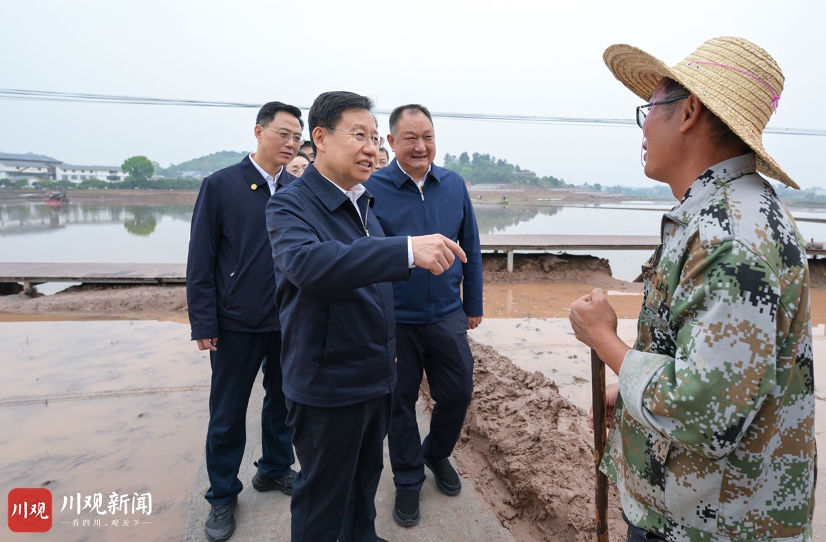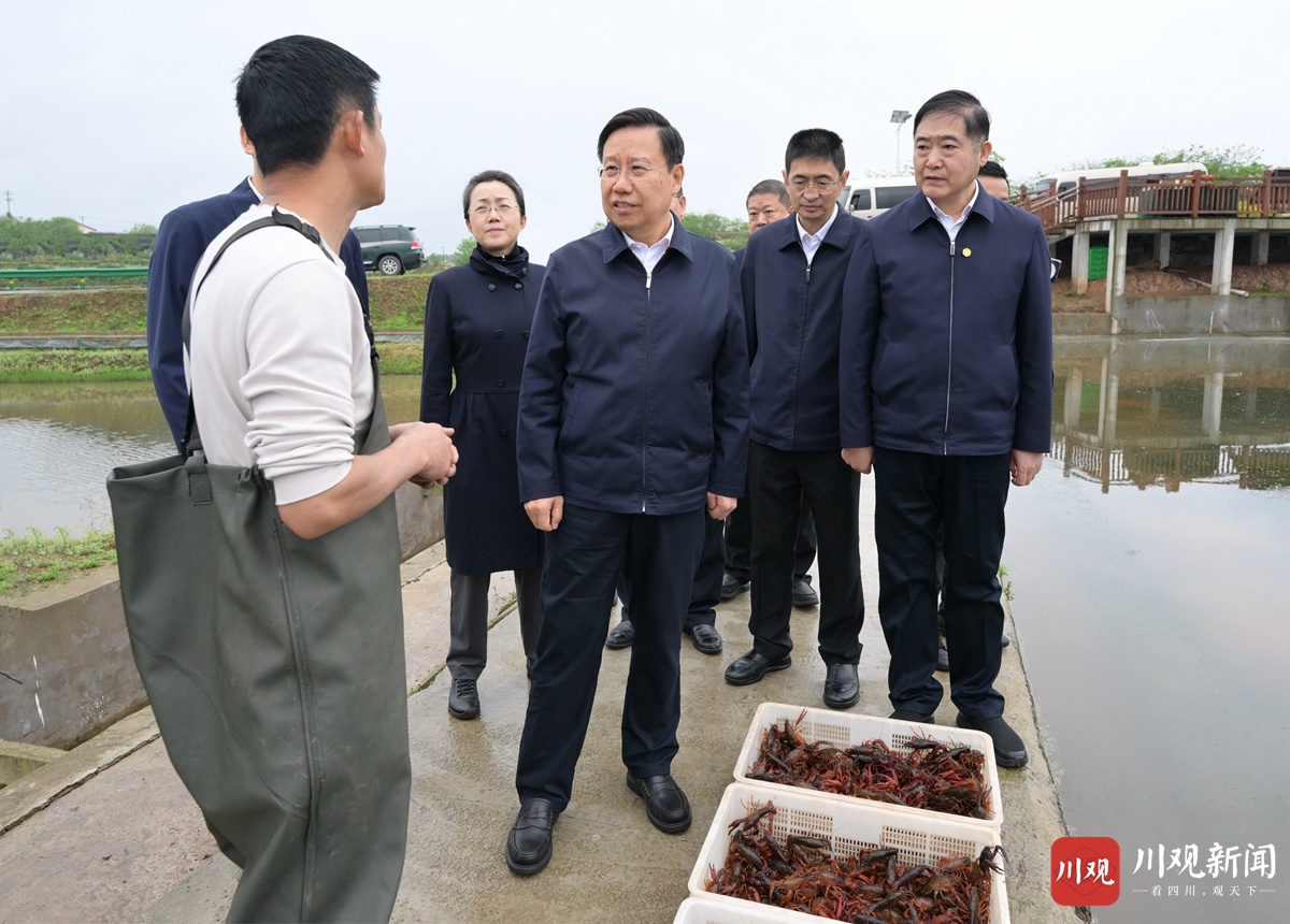 4月10日,省委书记、省人大常委会主任王晓晖到隆昌市内荣农高区现代农业产业示范园调研,与种粮农户交流,了解“稻虾共养”模式助农增收情况。