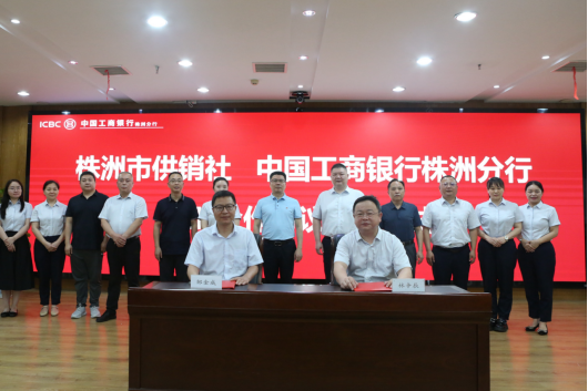 7月8日,株洲市供销合作社与中国工商银行株洲分行举行战略合作协议签约仪式。市社党组书记、理事会主任彭小中,中国工商银行株洲分行党委书记、行长喻毅彦出席签约仪式。
