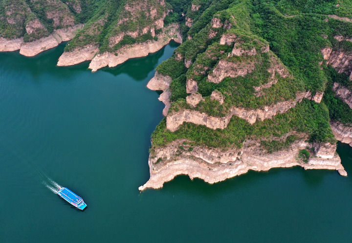 在河南省济源市拍摄的黄河三峡景色(2024年5月28日摄,无人机照片)。新华社记者 李安 摄