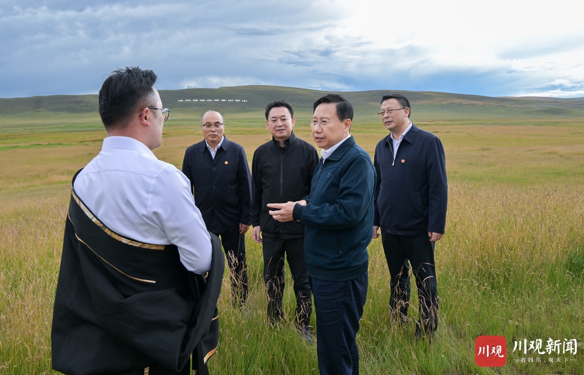 9月3日,省委书记、省人大常委会主任王晓晖到海拔4200米的石渠县色须镇红旗村生态管护站调研,实地察看草原湿地生态修复情况。