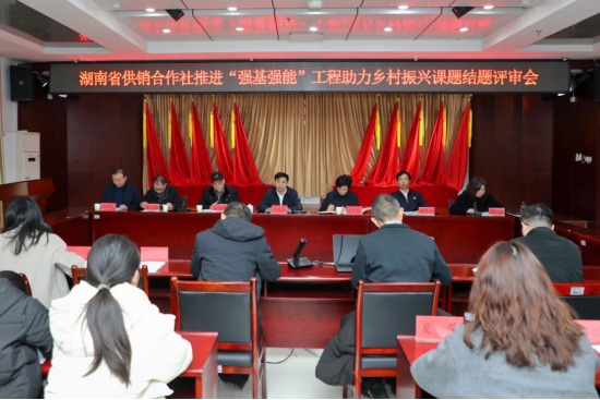 1月3日,《湖南省供销合作社推进“强基强能”工程助力乡村振兴问题与对策研究》课题结题评审会在省社机关举行。本次会议旨在总结课题研究成果,评估其对乡村振兴的有效贡献,并为湖南省供销合作社基层社建设发展提供指导建议。省社党组成员、理事会副主任邓文军出席并讲话,湖南商务职业技术学院校长李定珍介绍课题组织情况;会议由省社科技教育处处长刘娟主持,合作指导处、科技教育处、湖南商务职业技术学院、湖南省供销合作经济学会等相关人员参加。