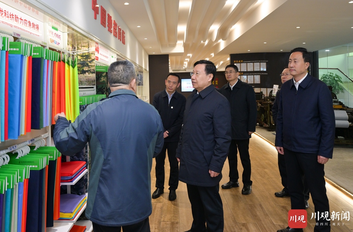 3月17日,省委书记、省人大常委会主任王晓晖到位于井研县的四川意龙科纺集团公司调研,详细了解产品研发、工艺创新、市场拓展等情况。