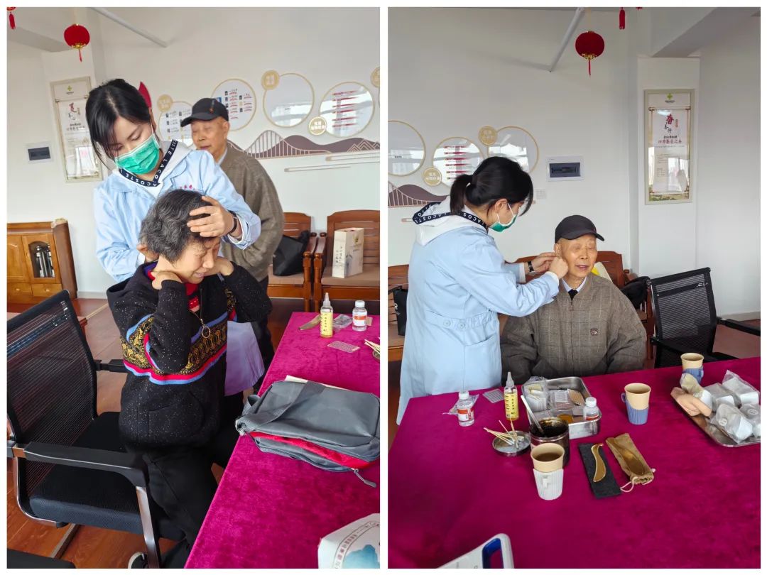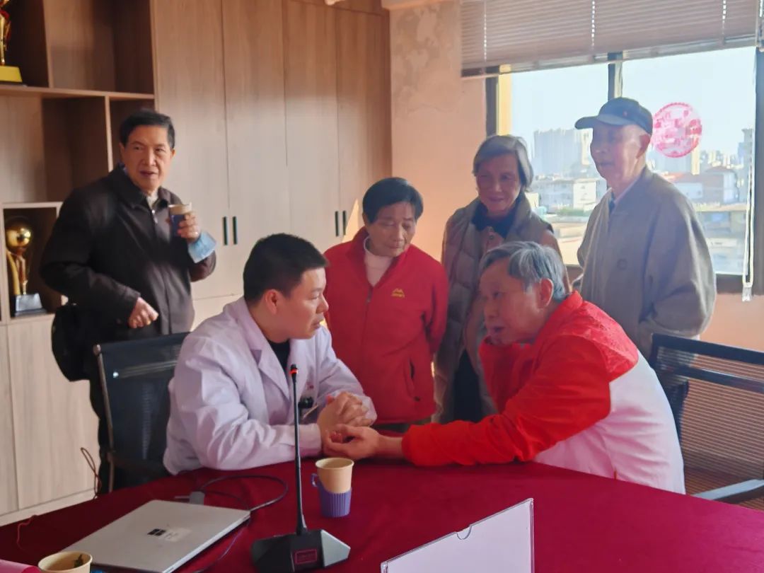 讲座结束后,邓鹏医生、徐驲医生为老干部们提供了问诊服务,通过望闻问切判断体质,结合老干部描述的病情等情况,为老干部定制相应的调理方案,给予专业的饮食、用药等建议。来自健康管理中心的医护人员,还为老干部介绍了中医药特色疗法,提供艾灸、穴位按摩等特色体验。