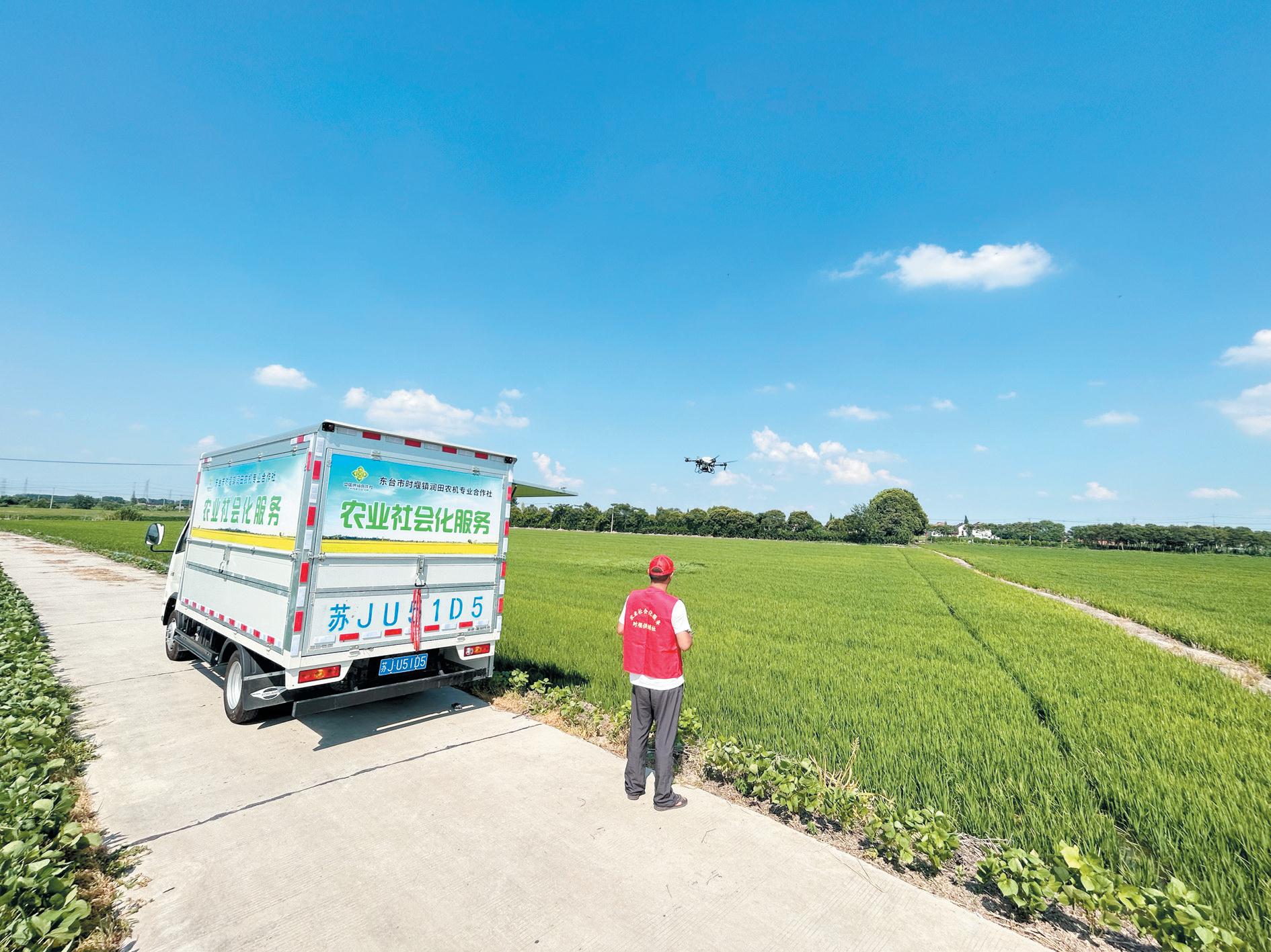 在泰兴市曲霞镇,泰兴市苏合农业服务有限公司面向小农户开展作物全程托管。2025年小麦收获季,在当地旱情较重的情况下,全程托管成效显著,较未托管地块亩均增产13.6%。