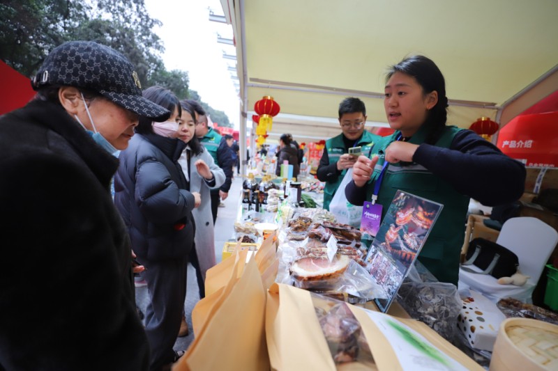 据统计,本次展销会汇集了近千种极具川渝年味的特色产品,涵盖农产品、地标产品、老字号食品、精深加工农产品及传统手工艺品等多个品类,让当地市民得以一站式购齐纯正川渝风味。在四川展区,德阳市的非遗老字号阵容尤为亮眼,供销联名款红茶“山也喜欢”、广汉非遗缠丝兔、中江非遗空心挂面等历经时光沉淀的美味飘香四溢;广元市带来云廊香源菜籽油、青川白茶等生态珍品,尽显大山馈赠的纯粹本味;南充市的黄精茶、黄精麻饼等滋养好物,承载着川东北地区的朴实醇厚;遂宁市的射洪玉太香特色水姜、麦地纳牛肉等生态美味,彰显了社有企业的过硬品质实力。四川省供销社旗下企业更是亮出重磅产品:泸州老窖·天府粮仓系列白酒由三代传承人匠心酿造,“川供天下”品牌涵盖粮油零食、便捷食品等丰富品类,老邻居商贸的新鲜蔬果与日化用品充分满足市民日常所需。