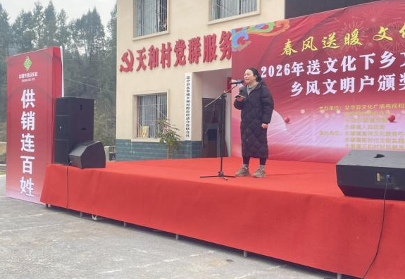骏马贺春,万象更新。近日,盐亭县供销合作社赴永泰镇参加“春风送暖 文化润心”暨文化惠民表彰活动,与永泰镇领导、乡亲们欢聚一堂,共话发展。活动现场,供销工作人员发放供销农资宣传单,普及供销最新惠民惠农政策;盐亭县供销社党组成员、监事会主任任倩发表致辞,对活动的成功举办致以热烈祝贺,向受到表彰的卫生文明户和致富带头人表达崇高敬意。