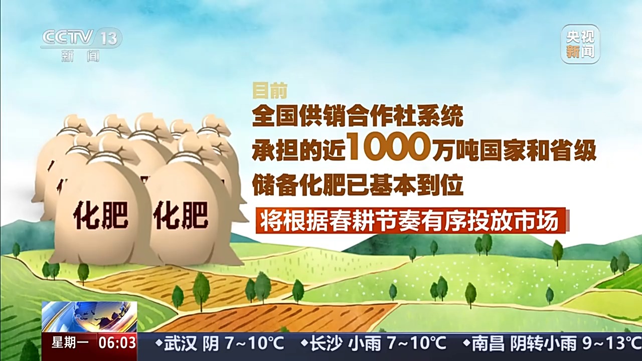 目前,全国供销合作社系统承担的近1000万吨国家和省级储备化肥已基本到位,将根据春耕节奏有序投放市场。