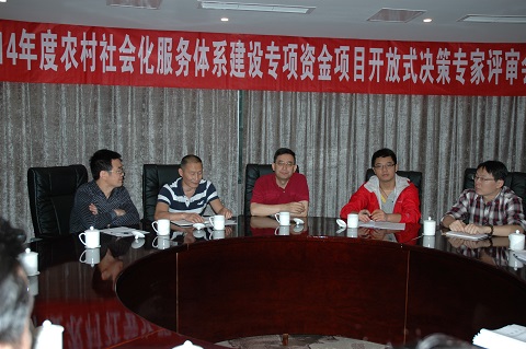 2014年6月13日,根据《四川省供销合作社联合社、四川省财政厅关于印发〈2014年四川省农村社会化服务体系建设专项资金申报指南〉的通知》(川供发〔2014〕8号)、《关于印发〈四川省农村社会化服务体系建设专项资金管理办法〉的通知》(川财建〔2013〕60号)以及四川省财政厅2014年开放式决策要求,省财政厅、省供销社在成都召开开放式决策评审会,组织专家对2014年四川省农村社会化服务体系建设项目进行了开放式决策评审。评审现场悬挂“四川省2014年农村社会化服务体系建设专项资金项目开放式决策评审会”横幅。省财政厅财税法规制度处方守盎到会进行现场监督。