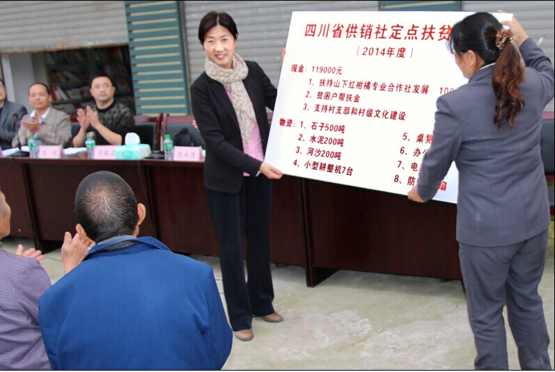 受省社党组书记、主任刘国成委托,10月30日,党组成员、机关党委书记周敏泉前往对口帮扶的华蓥市永兴镇河心村,举行定点扶贫捐赠活动。今年我社向帮扶村捐赠了包括扶持山下红柑橘专业合作社、帮扶贫困户、村级文化建设等11.9万元现金和水泥200吨、河沙200吨、石子500吨、小型耕整机7台、桌凳10套、电脑1台、防盗门1扇等物资,用于支持产业发展、基础设施改善、村支部阵地建设和贫困户帮扶。