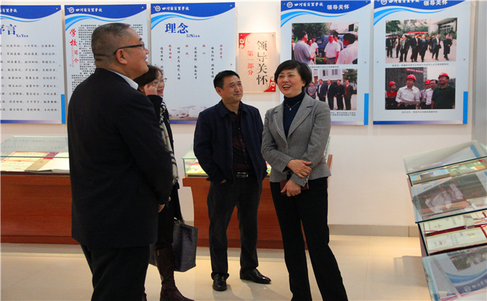杨主任去往校史陈列馆、图书馆、财会金融系、四川省农村电子商务研究所等场所视察,并就教育教学、实训实习、就业创业等工作与学校干部职工亲切交流。