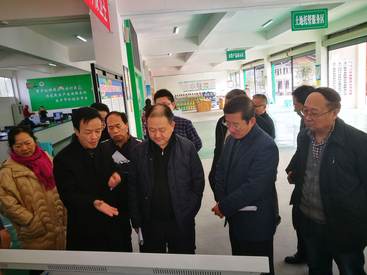 12月15日上午,全国供销总社经济发展与改革部副巡视员栾海波一行深入绵阳市盐亭县供销社为农服务中心,调研指导盐亭县供销社2015年农业综合开发土地托管试点项目,创新丘区农业土地托管的经验、做法。省供销社党组成员、副主任杜春茂,副巡视员李林,盐亭县政府党组副书记衡洪志陪同调研。