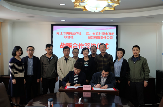 11月1日,省社所属四川省农村资金互助服务有限责任公司(以下简称:川农金服)与内江市供销社,就共建内江市供销社会计综合服务体系和推广内江会计综合服务创新成果,在成都签订了战略合作协议。省社党组成员、副主任(主持工作)杨武秀、总会计师郭云、省供销投资集团副总裁杨晓梅、省社机关相关处室共同出席了签约仪式,内江市供销社党委书记、主任蔡金芳、川农金服负责人杨韬代表双方签订协议。
