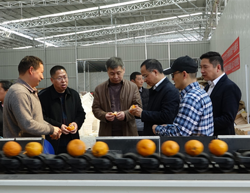 任晓春一行首先调研了蜀丰公司八月瓜果茶加工车间,听取石棉县情介绍及石棉县供销社工作汇报,随后走进黄金果业联合社和石棉县坪阳供销社黄果柑集配中心黄果柑洗选现场,了解基层社运营及开展黄果柑洗选、销售等情况。