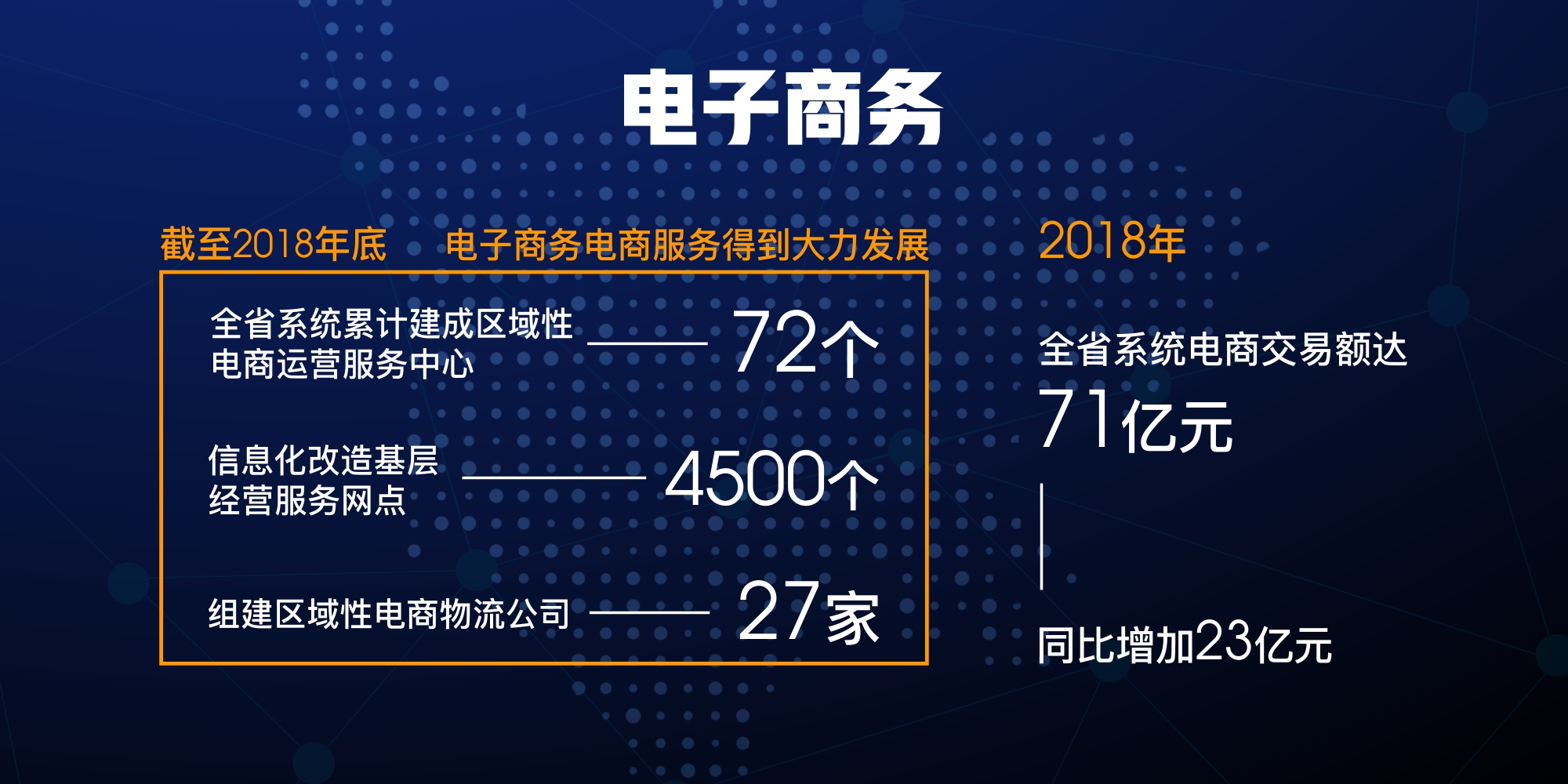 积极开展土地托管服务,土地托管及流转面积达360万亩;累计建成区域性电商运营服务中心72个,信息化改造基层经营服务网点4500个,组建区域性电商物流公司27家,电商交易额达71亿元;农村会计服务快速发展,全省供销社系统新建县级会计服务中心40个,面向3000多家村集体经济、农民专业合作社、农村小微企业等经营主体提供会计服务;