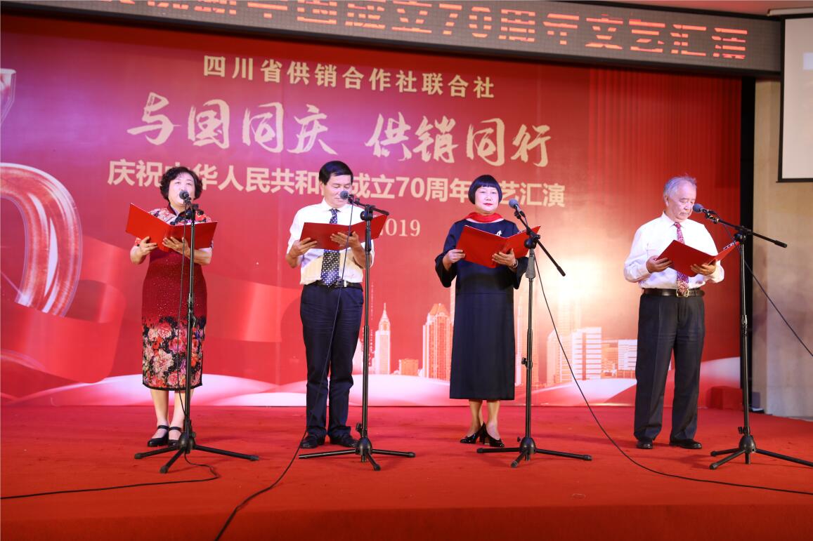 省社机关领导班子表演的众说供销《知道供销社吗》、成都诗歌献礼祖国母亲《天府记忆》,为晚会增添了气氛。
