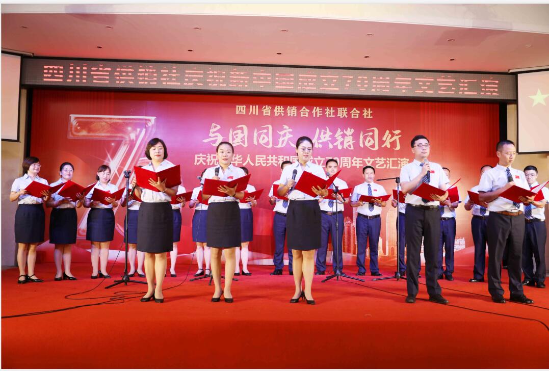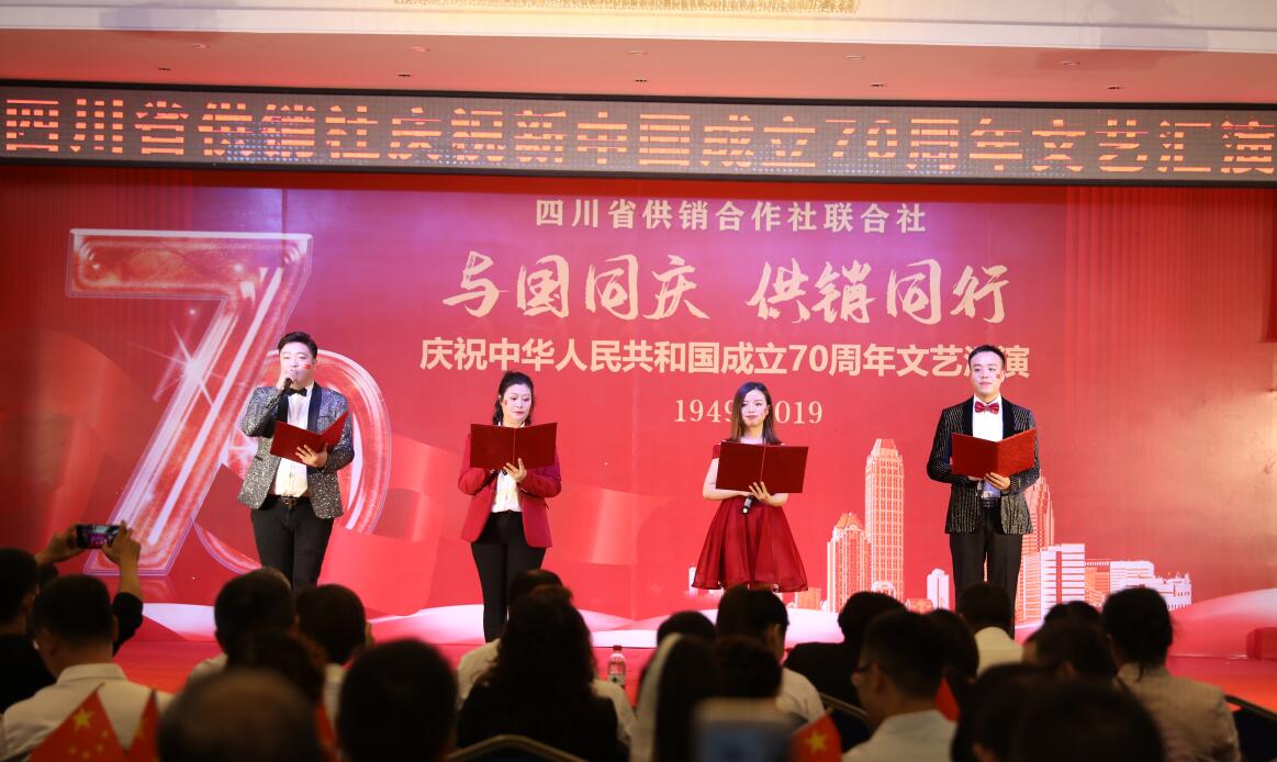 70年风雨兼程,70年硕果累累。在中华人民共和国成立70周年之际,2019年9月27日下午,四川省供销社隆重举办文艺汇演,向祖国母亲献上真诚的祝福。来自四川省供销社机关及直属企事业单位以及退休老干部约200余名“供销人”欢聚一堂,用丰富多彩的文艺节目庆祝中华人民共和国成立70周年。