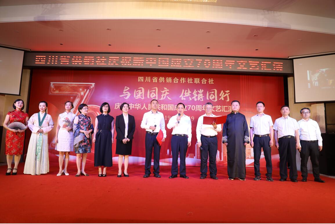 为隆重庆祝新中国成立70周年,大力弘扬以爱国主义为核心的伟大民族精神,9月27日,由四川省供销合作社联合社主办的“与国同庆供销同行庆祝中华人民共和国成立70周年文艺汇演”在蓉成功举办。