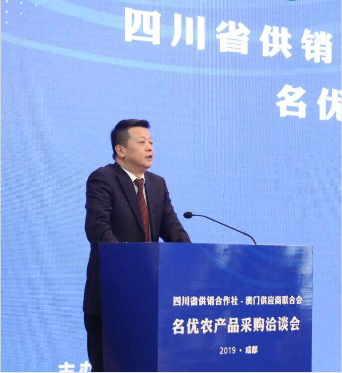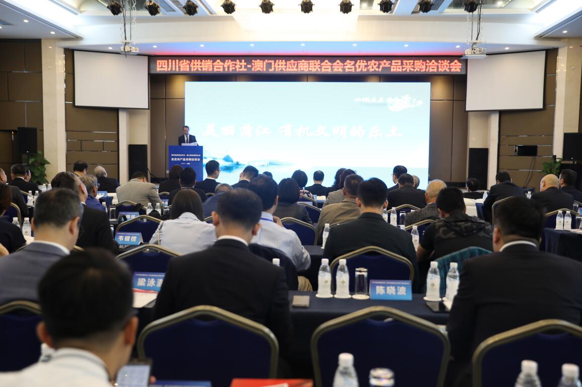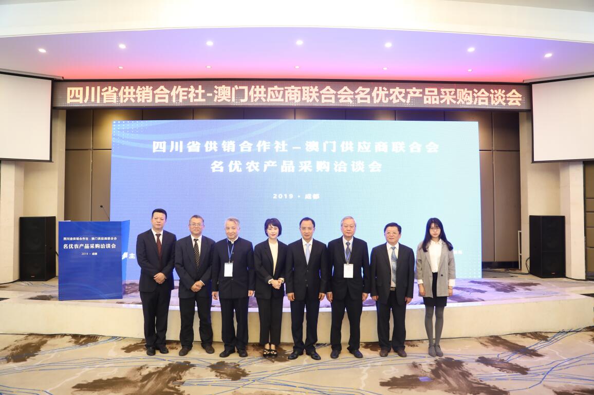 为贯彻四川省人民政府和澳门特区政府建立的川澳合作会议机制精神,务实推进四川与澳门各领域交流合作,落实2019年5月四川省供销社党组书记、主任任晓春率队赴港澳开展的“四川名优农产品港澳行活动”成果,四川省供销社邀请澳门供应商联合会组织24家澳门企业回访四川,于10月11日在成都举办四川省供销社-澳门供应商联合会名优农产品采购洽谈会。四川省供销社党组书记、主任任晓春,四川省供销社党组副书记、监事会主任张强,四川省供销社党组成员、副主任、省供销投资集团董事长、总裁向伟益,澳门贸易投资促进局成都代表处主任李思寻、澳门供应商联合会会长叶绍文、澳门供应商联合会理事长李杰兴等嘉宾出席了本次洽谈会。洽谈会由四川省农产品经营集团董事长韦兴林主持。