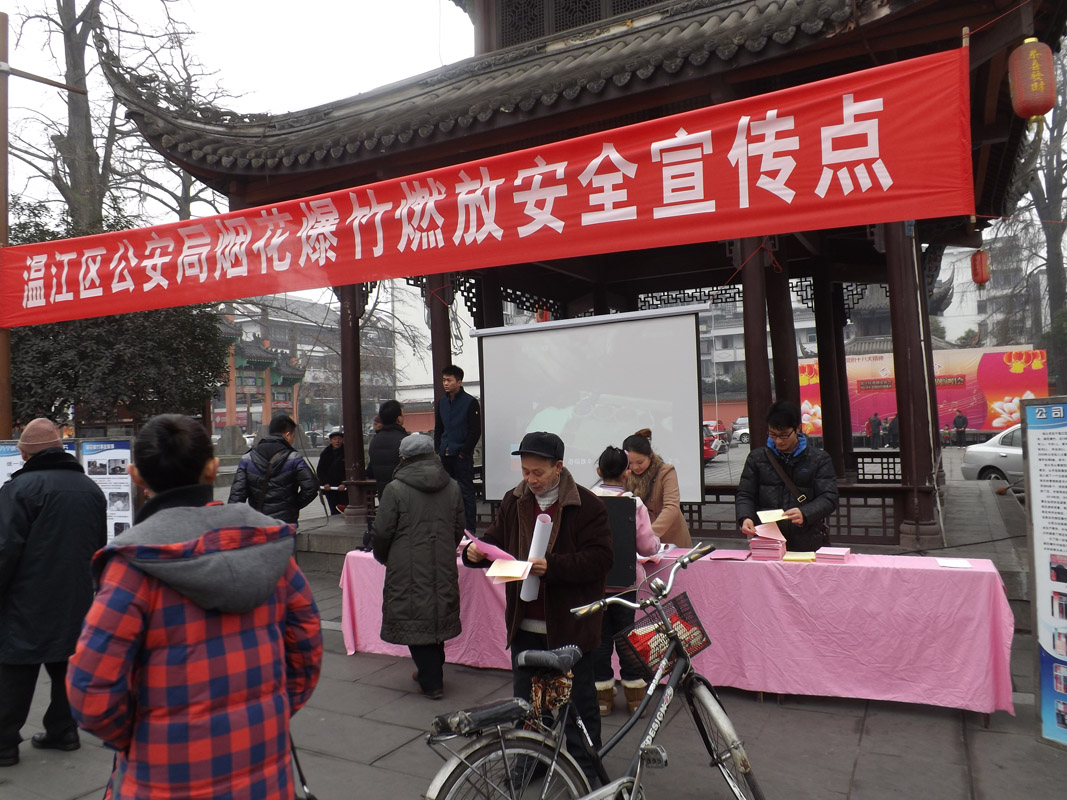岁末年初,是烟花爆竹销售、燃放的旺季,也是烟花爆竹事故多发时期。为有效地遏制烟花爆竹事故的发生,切实做好烟花爆竹安全监管工作。趁着星期天市民集中出行的时期,成都市温江区供销社、区公安分局、区安监局、区消防大队和区供销社下属日杂公司于120日在文庙广场联合开展了烟花爆竹燃放安全宣传活动。
