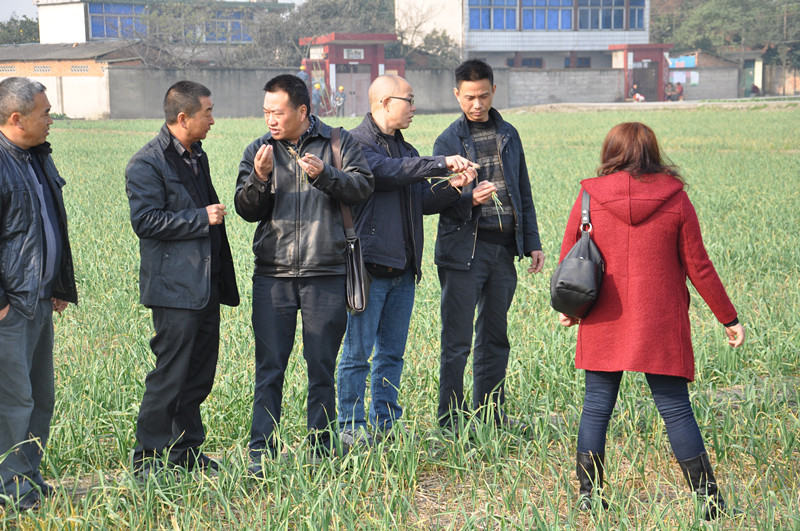区供销社“走基层”活动开展期间,接到位于崇州1500余亩温江大蒜种植基地的云南种植户反映温江大蒜发生病虫害,由于种植技术缺乏出现温江大蒜长势不良等问题。12月11日,区供销社领导及区大蒜专业协会技术人员来到崇州大蒜基地深入田间地头为蒜农进行技术指导,向蒜农宣传科学种植和病虫害预防知识。同时,为农户开出了治疗大蒜病虫害的相关农药处方,打消了种植户在病虫害防治和种植技术方面的顾虑。另外,为鼓励种植户对种植大蒜的信心,区供销社将向蒜农和种植户提供温江大蒜信息技术、种植技术、管理技术和销售等一条龙服务,进一步提升了云南种植户加大温江大蒜种植规模投入的信心。
