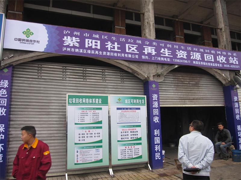 今年,纳溪区供销社以纳溪区被省供销社确定为再生资源24个普及县为契机,以区供销社所属绿辰公司为载体,以公司三江坝分拣中心为依托,认真配合区城管局参与城市生活垃圾分类处理工作。目前,公司投入20余万元在城区紫荆城和明园小区、上坝社区周边建起规范的6个分类回收点,各回收点分类后到三江坝分拣中心都配备有回收车,各环节衔接有序,规范运作。
