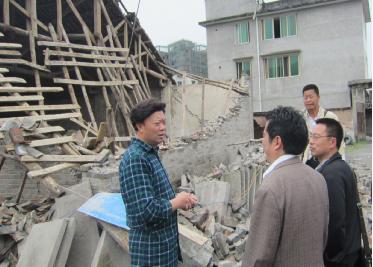 王小刚副主任一行查看李家坎化肥仓库房屋损毁情况