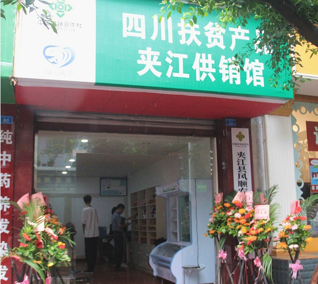 为切实深化消费扶贫助力脱贫攻坚,推进“四川扶贫”公益品牌建设,拓展扶贫产品销售途径,夹江县供销社于7月29日在县城南街58号开设了全市首家“四川扶贫”产品实体馆,专销夹江县域内腐乳、鸡蛋、茶叶、蔬果等“四川扶贫”授权产品,除线下门店销售之外,该专馆还采用“互联网+”模式,将夹江县域内“四川扶贫”产品上线“四川扶贫”天猫旗舰店、饿了么、美团等本地电商外卖平台,还拟建立“四川扶贫”农产品直供微信群,积极推广销售“四川扶贫”产品,助农增收。