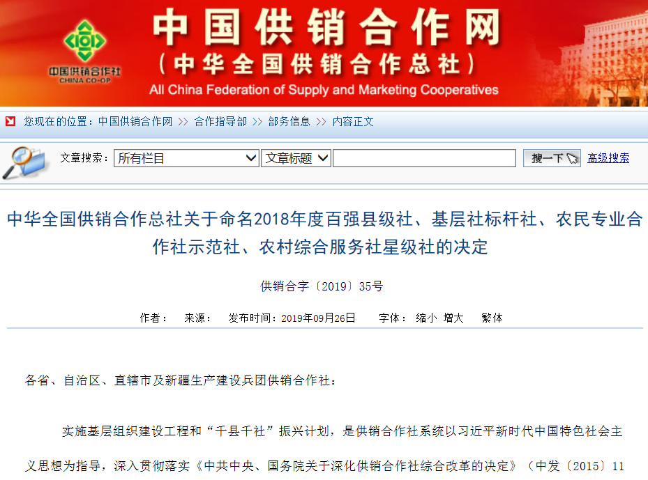 日前,中华全国供销合作总社公布了2018年度基层社标杆社名单。崇州市耘丰农机专业合作社入选全国供销合作系统基层社标杆社,系成都地区2018年度唯一一家基层社标杆社。