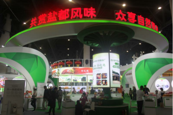 整个自贡的展馆呈现一派大自然的清新感,以绿色为主色调,“自然贡品”为主题,取其中“自”与“贡”二字,既关联了地名,又突出了自贡的农产品天然、自然,具有“贡品”的品质。