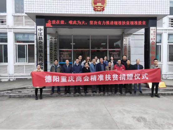 德阳市供销社监事会主任周军、中江县政协副主席王军等出席捐赠仪式。德阳市重庆商会11家企业代表和会龙镇党委书记、会龙镇人民政府镇长等参加仪式。