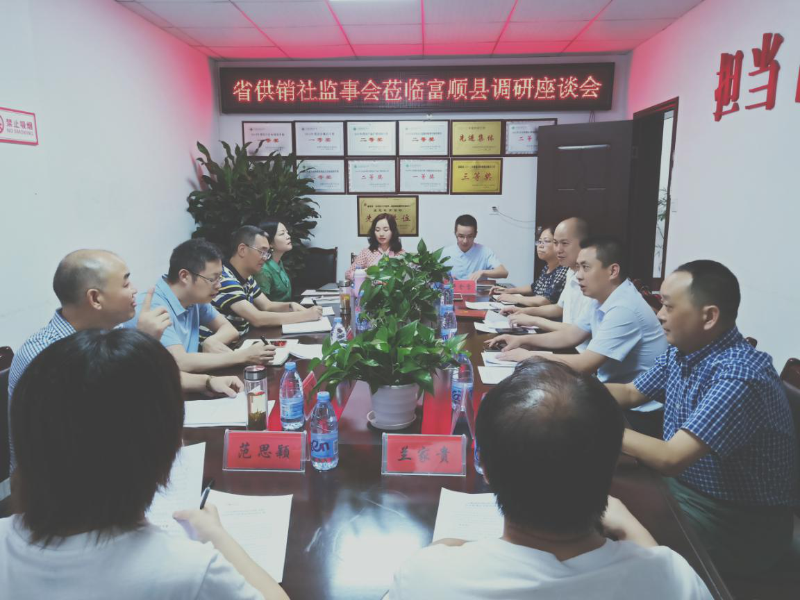 近日,省供销社监事会副主任彭刚一行到富顺县调研供销社内部审计和监事会运行情况,市供销社副主任李召勇、县政府副县长王揖辉及县供销社相关负责人陪同。