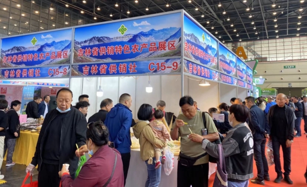 吉林省供销合作社提前谋划参展事宜,会前与组委会进行多次沟通,确定展区在展馆核心位置,比邻抖音快手特装区,整体搭建呈圆拱形造型,精心打造了16个特色展位,组成“吉林省供销特色农产品展区”,采取产品展销与形象宣传相结合,线下展示与线上销售相结合的方式,集中展示吉林省供销社系统在服务“三农”,推进乡村振兴工作中的新形象、新成效、新成果。整体策划宣传旨在展销“吉字号”供销特色农产品,彰显供销社“为农、务农、姓农”的使命和担当。展区总面积180多平方米,展品种类丰富、质量优良,涵盖了吉林大米、吉林鲜食玉米、杂粮杂豆、鹿产品、蜂产品、长白山人参木耳蘑菇等15大类100余种特色农产品,重点展销“供销三品”(自主品牌、供销珍品、金牌农产品),吸引了众多前来观展的买家和市民。