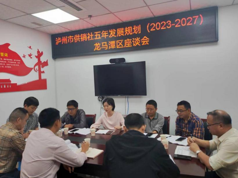 近日,泸州市供销社理事会副主任邱玫率领专家团队莅临龙马潭区,主持召开市供销社五年发展规划(2023-2027)龙马潭区座谈会,龙马潭区供销社领导班子、股室负责人和社有企业代表参与座谈。