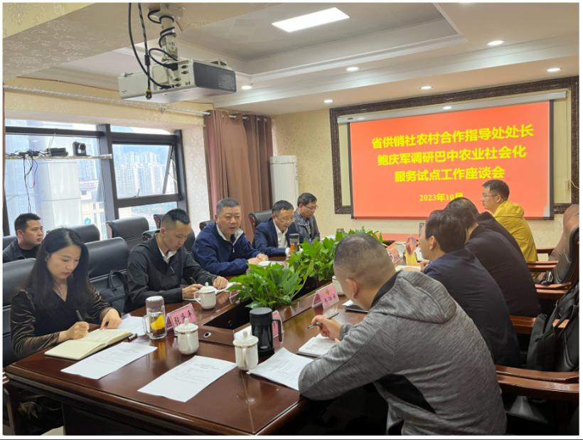 10月11日,巴中市供销社召开农业社会化服务试点工作座谈会,省社农村合作指导处鲍庆军处长到会指导,市供销社理事会主任刘羽主持会议。