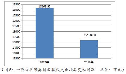 2018年一般公共预算支出决算数为15198.88万元,完成预算79.07%。其中: