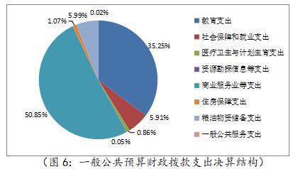 2018年一般公共预算财政拨款支出15198.88万元,主要用于以下方面:一般公共服务支出3.00万元,占0.02%;教育支出5357.50万元,占35.25%;社会保障和就业支出898.72万元,占5.91%;医疗卫生与计划生育支出129.75万元,占0.86%;资源勘探信息等支出8.00万元,占0.05%;商业服务业等支出7729.23万元,占50.85%;住房保障支出162.68万元,占1.07%;粮油物资储备支出910.00万元,占5.99%。