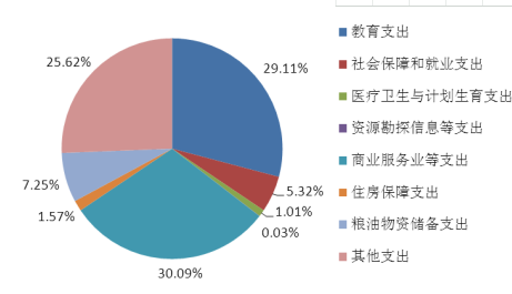 省供销社2016年一般公共预算财政拨款支出19,951.75万元,主要用于以下方面:教育支出5,808.06万元,占29.11%;社会保障和就业支出1,061.02万元,占5.32%;医疗卫生与计划生育支出201.74万元,占1.01%;资源勘探信息等支出5.00万元,占0.03%;商业服务业等支出6,004.29万元,占30.09%;住房保障支出314.12万元,占1.57%;粮油物资储备支出1,447.00万元,占7.25%;其他支出5,110.52万元,占25.62%。