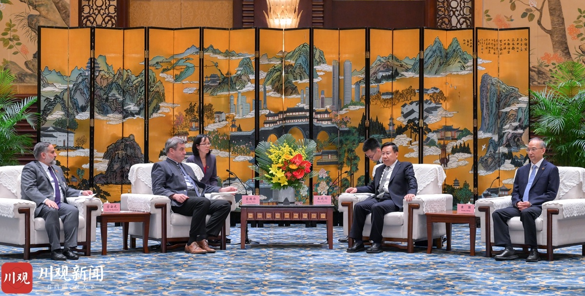 会见中,王晓晖代表省委、省政府向索德尔率团来川考察访问表示欢迎,并简要介绍了四川经济社会发展情况。他说,中德两国是全方位战略伙伴。去年11月,习近平主席同德国总理朔尔茨举行视频会晤,为推动中德关系向前发展指明了前进方向,也为四川深化与巴伐利亚州的交流合作提供了根本遵循。当前,我们正坚持以中国式现代化为引领,全面推进新时代新征程四川现代化建设,特别是对加快发展新质生产力、构建现代化产业体系、推进城乡融合发展等作出系统部署,这将为双方合作带来巨大机遇和广阔空间。巴伐利亚州是推动中德经贸合作和地方友好的先行者,我们十分珍视双方的友好关系和取得的合作成果。下一步,我们将深入贯彻两国领导人重要共识,以此次签署重申友好省州关系协议为契机,深化拓展四川与巴伐利亚州在经贸投资、科技创新、绿色低碳、教育医疗、文体旅游等领域的务实合作,推动双方友好合作再上新台阶,为推动中德构建面向未来的全方位战略伙伴关系贡献力量。