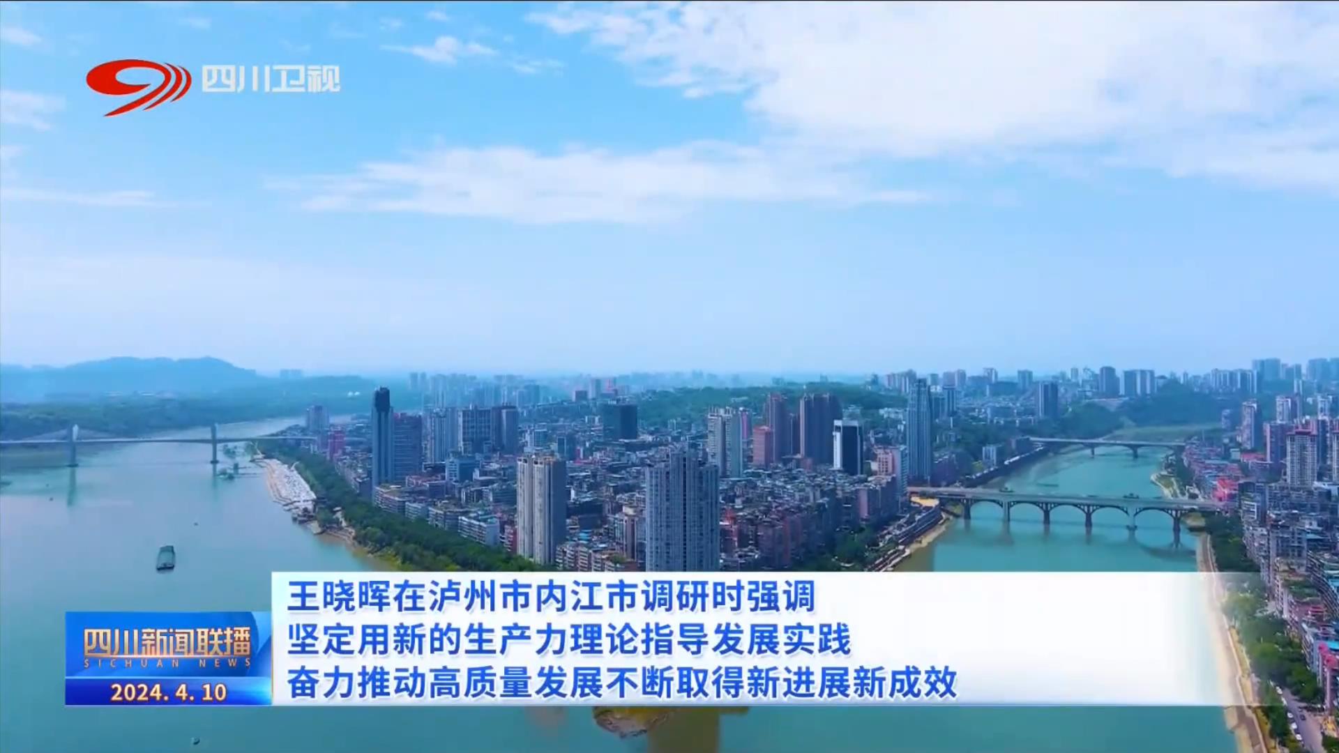 4月9日至10日,省委书记、省人大常委会主任王晓晖前往泸州市、内江市调研。他强调,要深入贯彻习近平总书记关于高质量发展的重要论述和对四川工作系列重要指示精神,坚定用新的生产力理论指导发展实践,聚焦省委发展战略实施,因地制宜发展新质生产力,奋力推动高质量发展不断取得新进展新成效。