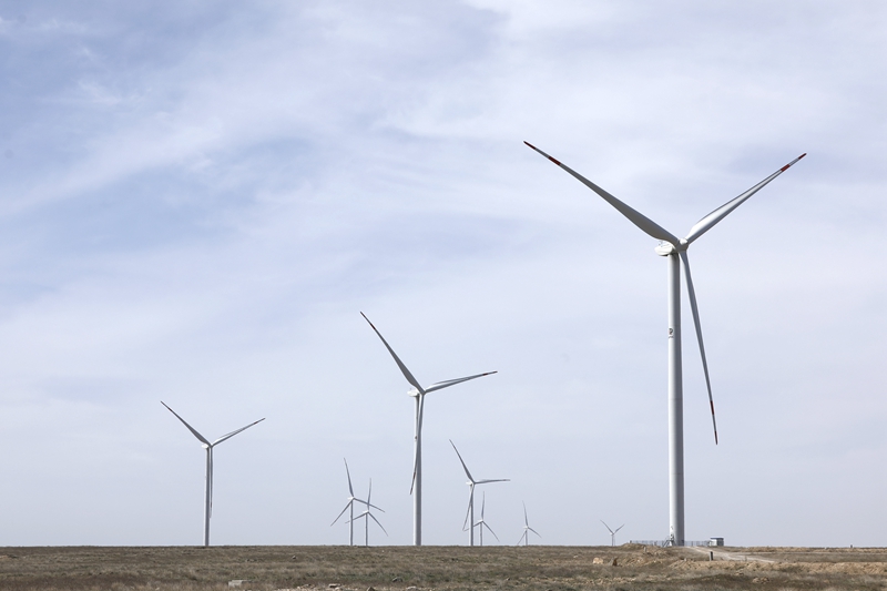 这是2023年4月3日在哈萨克斯坦札纳塔斯拍摄的札纳塔斯100兆瓦风电项目风机。新华社发(奥斯帕诺夫 摄)