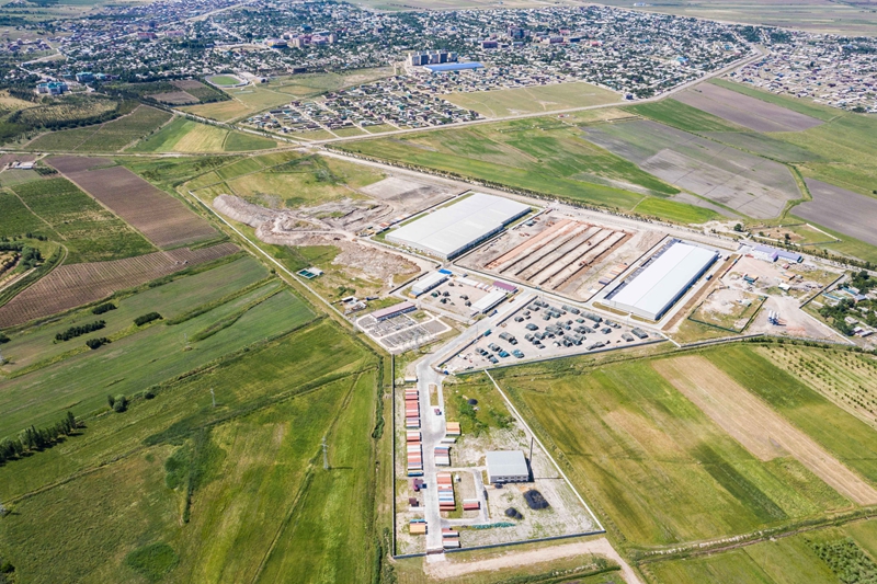 这是2019年5月21日在塔吉克斯坦丹加拉拍摄的中泰纺织厂(无人机照片)。新华社记者 张若玄 摄