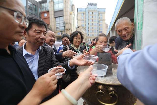 走进展销区,一股浓郁的羊肉香气扑鼻而来。随着弥漫散开的雾气,熬汤的师傅拿着汤勺兜着锅底不紧不慢地搅动,撇去浮沫,汤色清澈透亮,而羊汤的香气,也慢慢蒸腾在整条街道里。“青海的羊肉细嫩丰腴而不腻,汤鲜味浓、奶香浓烈,口感特别好。尤其现在是深秋季节,喝一碗热气腾腾的羊肉汤,感觉浑身都暖和起来了。”在青海绿色有机农畜产品四川展销中心门口,成都市民刘先生在品尝完羊肉汤后不禁赞叹道。