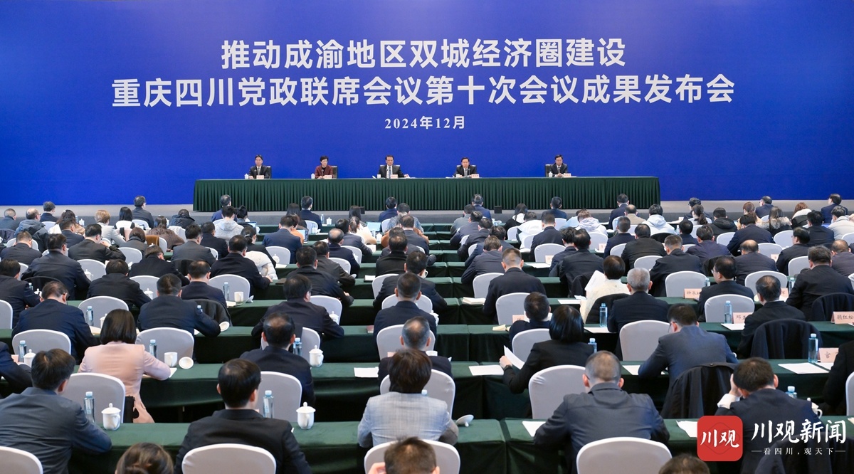 发布会前,两省市召开座谈会分别通报了2024年经济社会发展情况和全方位深化改革协作联动的有关考虑,听取了关于深化合作推动成渝地区双城经济圈建设2024年重点任务完成情况及2025年重点任务考虑、2024年共建成渝地区双城经济圈重点项目推进情况及2025年重点项目考虑、重庆成都双核联动联建2024年重点任务完成情况及2025年重点任务考虑的汇报,审议了《成渝地区双城经济圈集成式标志性重大改革清单(2025—2027年)》《进一步强化川渝公共服务共建共享行动方案(2025—2027年)》《成渝地区双城经济圈建设战略实施五周年跨区域协作典型经验》。